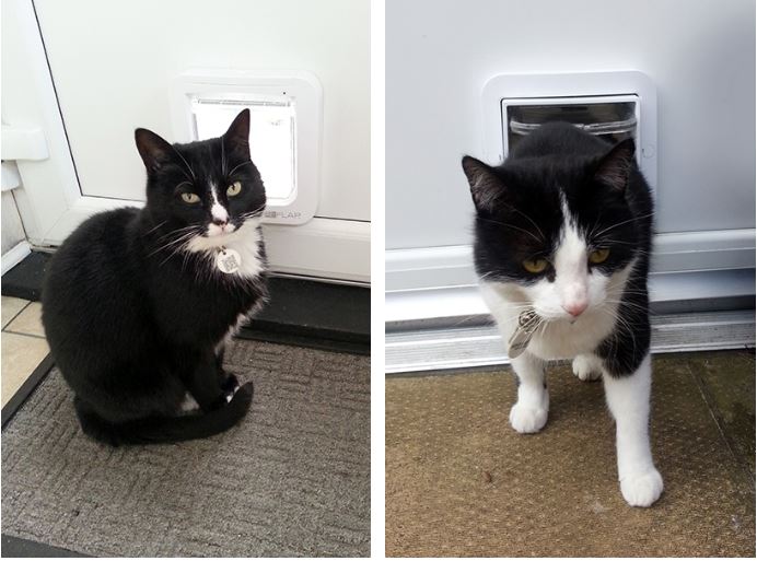 Julie a acheté une Chatière à puce électronique SureFlap pour ses chattes Lizzie et Sophie, âgée de cinq ans, afin d'éviter que d'autres chats du voisinage ne viennent perturber la maison.